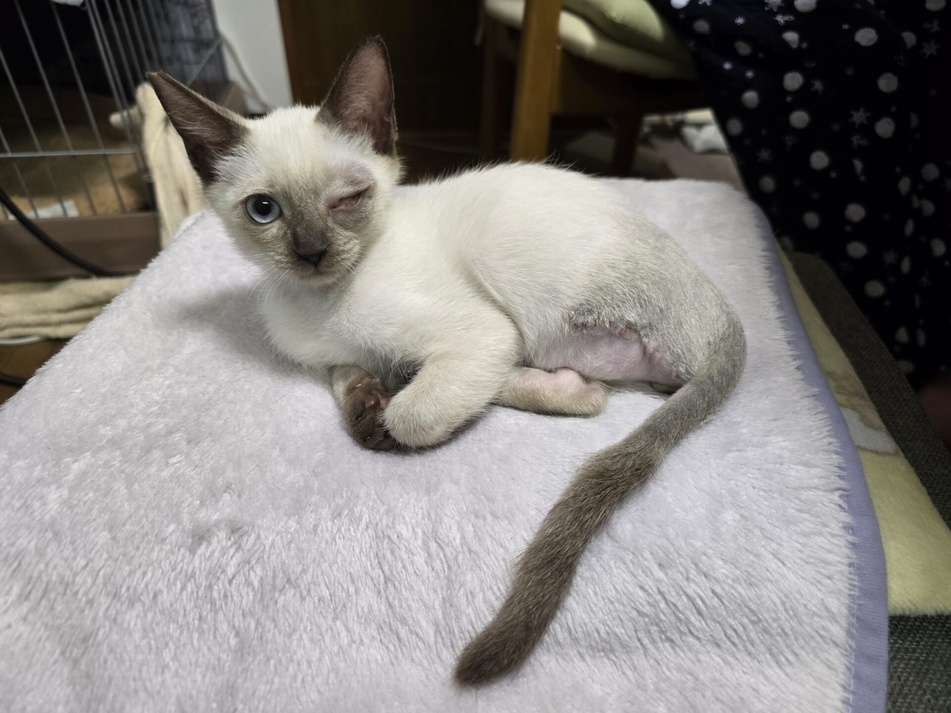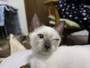 左目が風邪の後遺症で見えません。左後脚もありません。