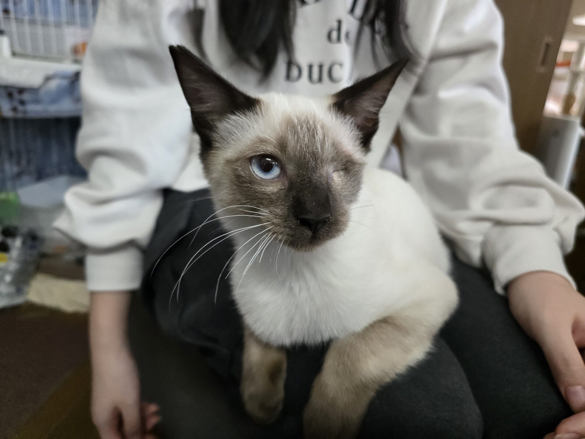 左目が風邪の後遺症で眼球摘出手術をうけました。左後脚も断脚手術をうけました。