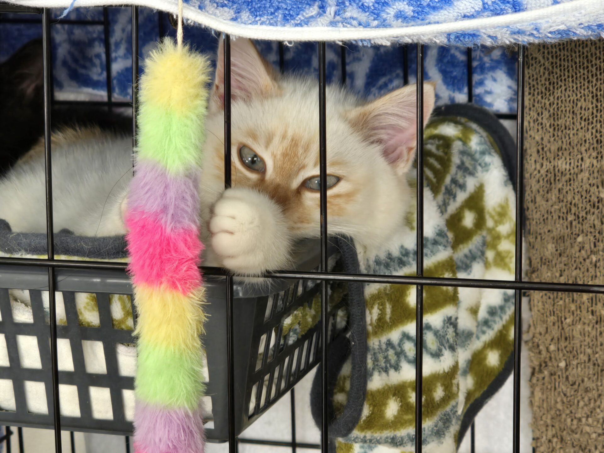 ビビりですが遊ぶの大好き、食欲旺盛で元気です。キャンディーと兄弟です。